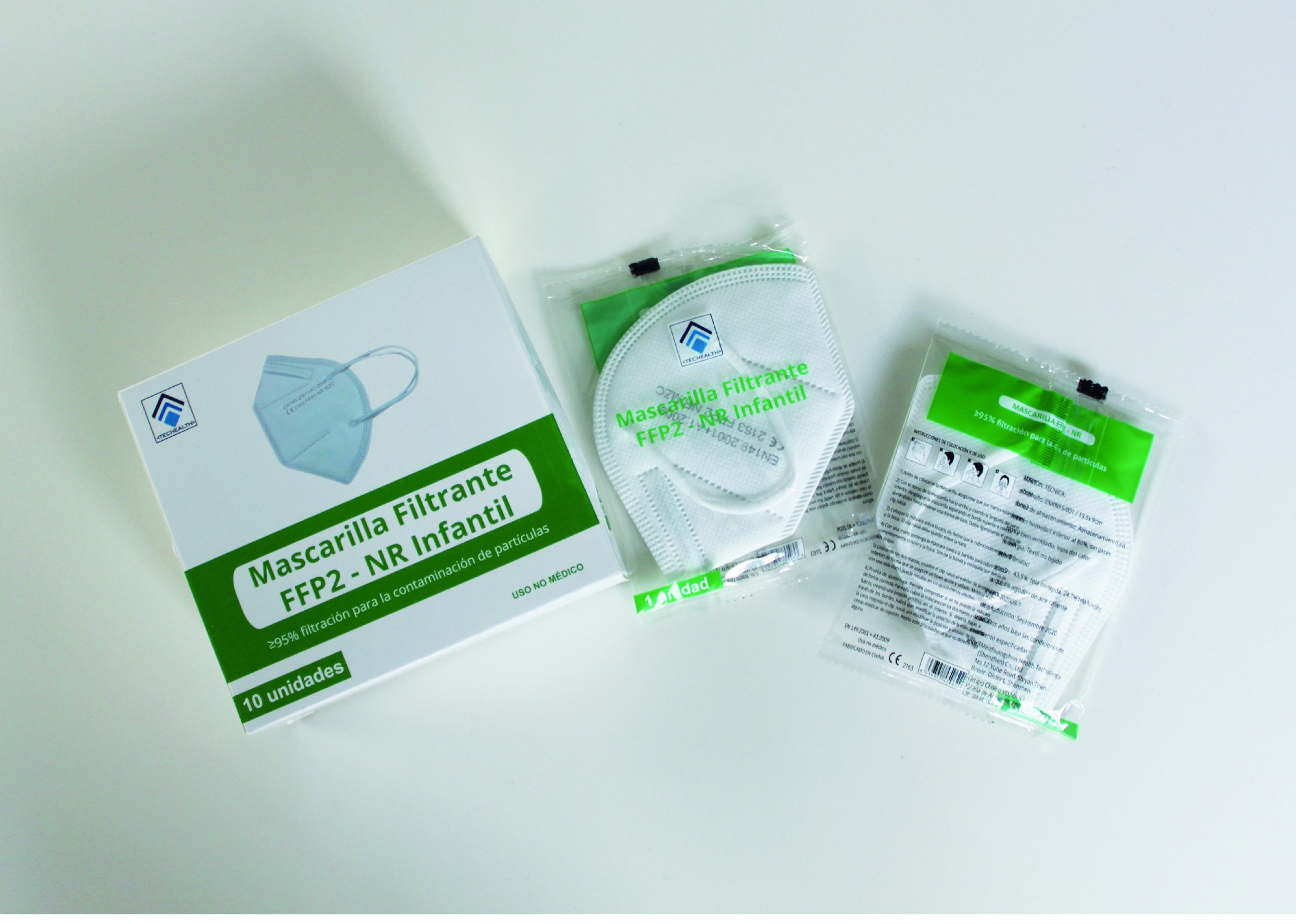 Mascarilla FFP2 INFANTIL Niño y Niña TECHEALTH. Con doble protección, tanto para el portador de la mascarilla como para las personas del entorno.